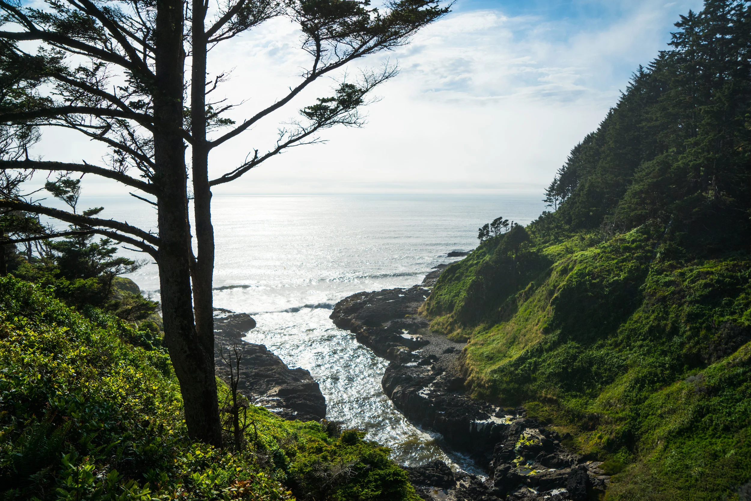 We made a few stops today. First at the Oregon welcome center where two young girls hooked us up with some sweet stickers, post cards and maps for the ride. We ate lunch there and headed out. The Oregon cost is beautiful, and overall I have this sense it will trump California’s. Before going over the states tallest bridge we stopped at a lookout, where we could hike a few hundred feet down to an unoccupied, relatively “secret” beach, thus its name Secret Beach. It required climbing down at least a hundred of feet using ropes, given it being steep and not well tracked. Monkey got a little dirty on the climb, and at one point I thought I had lost my camera cover for good, but I recovered it further down the grade.