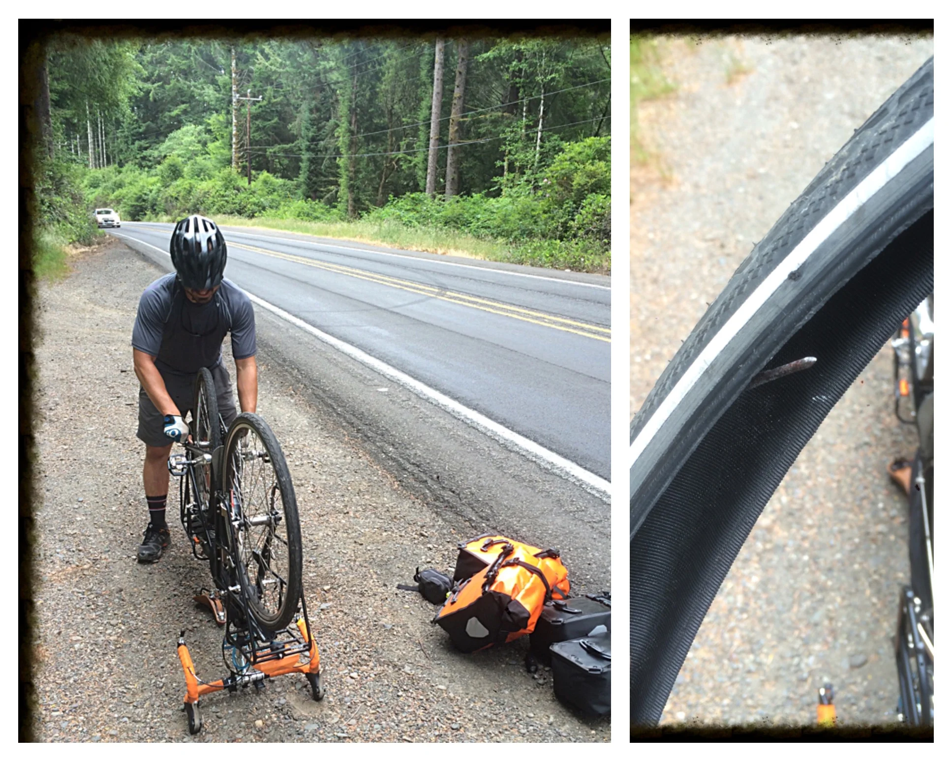 Oh yeah, Erik got the first flat of the trip. I think that nail had something to do with it.